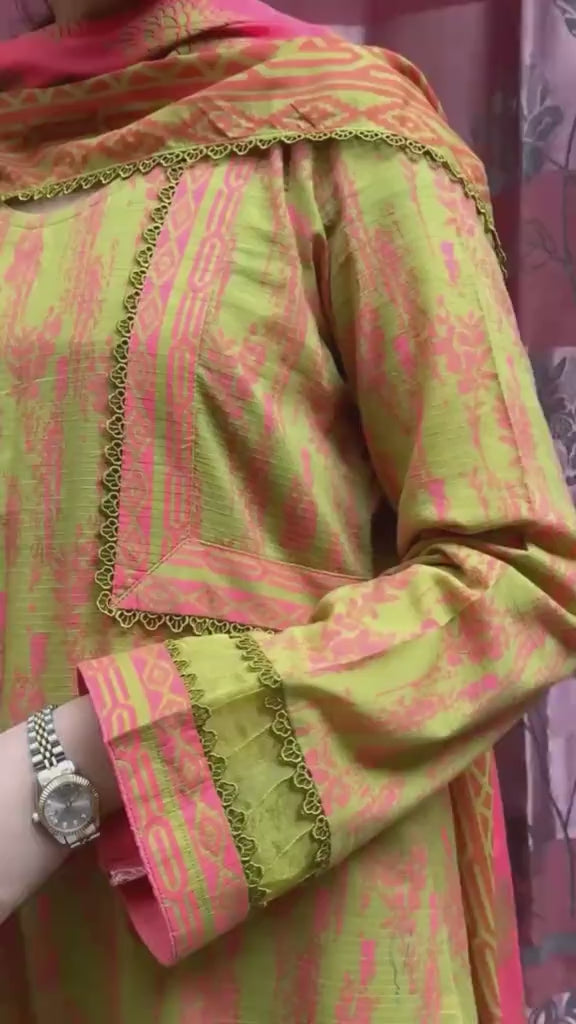 your style with this elegant 3-piece ensemble. The Premium dress, offering a perfect blend of sophistication and comfort. Paired with a Smart- Shalwar, this set ensures a flattering and sleek silhouette. The Dupatta adds a touch of grace and elegance, completing the look with delicate lace accents.